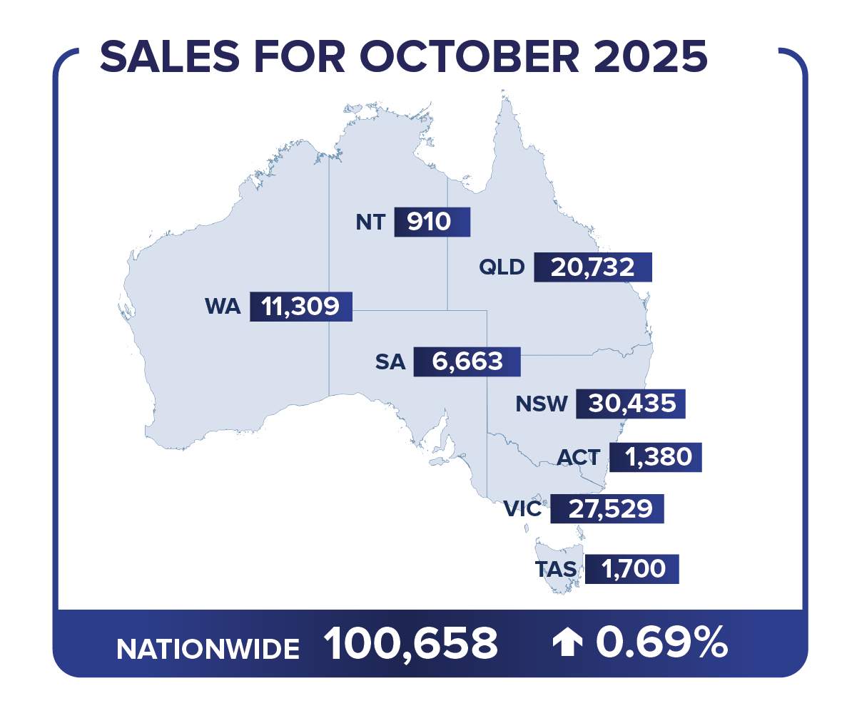 New vehicle sales in October 2025 recorded a 0.69 per cent increase on the same month last year, continuing a trend of steady market performance. 100,658 new vehicles were delivered across the country in October.